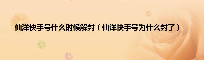 本文,仙洋快手号什么时候解封,仙洋快手号为什么封了到此就分享完毕,希望对大家有所帮助。