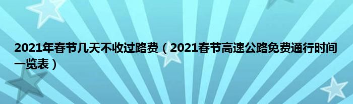本文,2021年春节几天不收过路费,2021春节高速公路免费通行时间一览表到此就分享完毕,希望对大家有所帮助。