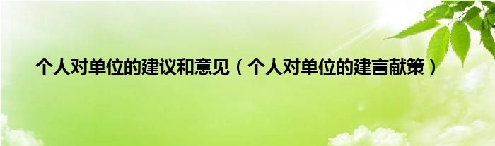 大家好,小问来为大家解答以上问题。个人对单位的建议和意见,个人对单位的建言献策这个很多人还不知道,现在让我们一起来看看吧!