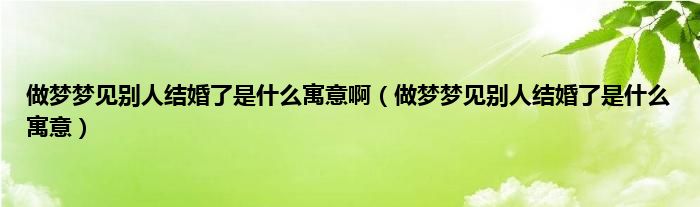 大家好,综合小编来为大家讲解下。做梦梦见别人结婚了是什么寓意啊,做梦梦见别人结婚了是什么寓意这个很多人还不知道,现在让我们一起来看看吧!