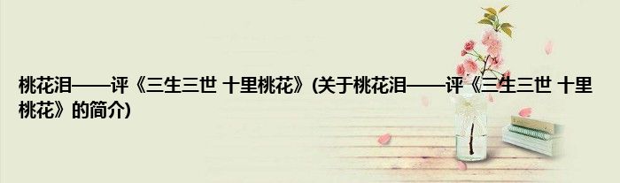 本文关于桃花泪——评《三生三世,十里桃花》的简介就讲解完毕,希望对大家有所帮助。