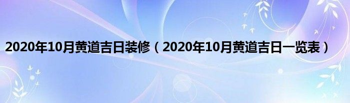 大家好,综合小编来为大家讲解下。2020年10月黄道吉日装修,2020年10月黄道吉日一览表这个很多人还不知道,现在让我们一起来看看吧!