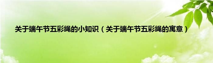 本文关于端午节五彩绳的小知识,关于端午节五彩绳的寓意到此分享完毕,希望对大家有所帮助。