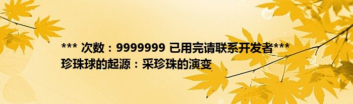 大家好,综合小编来为大家讲解下。*** 次数:9999999 已用完请联系开发者*** 珍珠球的起源:采珍珠的演变这个很多人还不知道,现在让我们一起来看看吧!