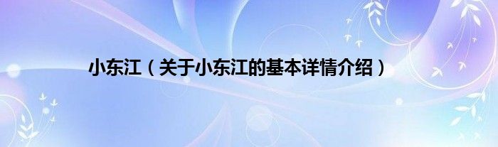 本文关于小东江的基本详情介绍就讲解完毕,希望对大家有所帮助。