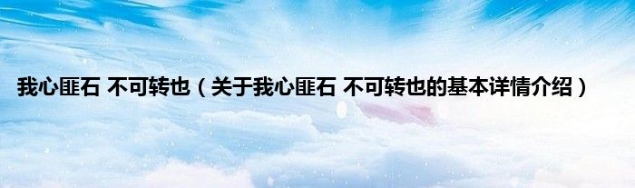 本文关于我心匪石 不可转也的基本详情介绍就讲解完毕,希望对大家有所帮助。