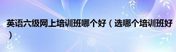 最佳答案大家好,乐儿来为大家解答以下问题,英语六级网上培训班哪个好,选哪个培训班好很多人还不知道,现在让我们一起来看看吧!一、六级网上培训班哪个好英语六级证书对大学生来说还是比较困难的。如果学习自觉性非常强的那类考生可以通过自学取证。对于自觉性不是很强可以报班学习。跟着专业四六级老师学...