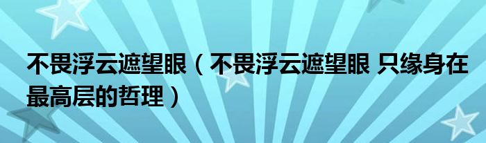 不畏浮云遮望眼(不畏浮云遮望眼只缘身在最高层的哲理)