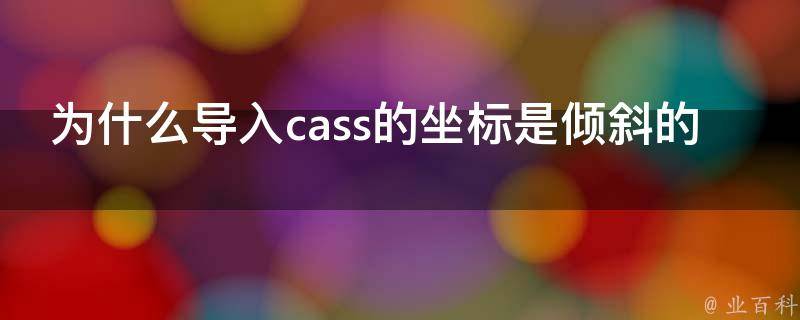 1、坐标数据格式不正确:如果坐标数据的格式不符合CASS的规范要求,例如缺失或不正确的坐标轴顺序、单位错误等,可能会导致坐标倾斜。检查导入的坐标数据的格式是否符合CASS的规范要求,确保坐标数据正确无误。