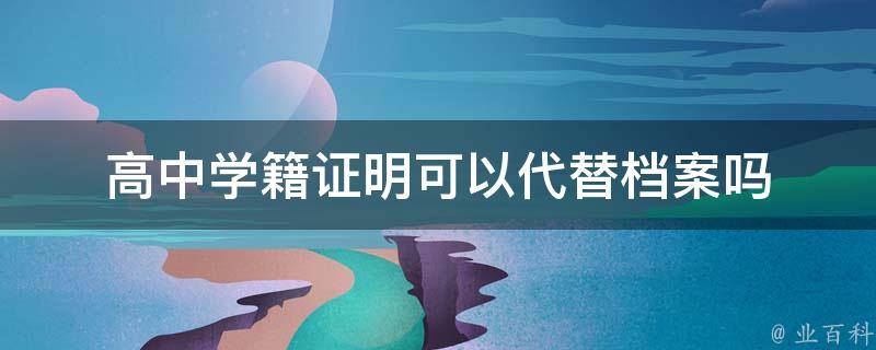 高中学籍证明不可以代替档案。学籍证明一般用于学生申请转学、出国留学、参加招聘会等相关事务,而学籍档案是一份重要的学生档案,对学生入学、毕业、工作等发展过程有重要的参考作用。虽然学籍证明能够证明学生在学校就读的事实,但不包含详细的学生学籍档案信息,因此无法代替学籍档案。