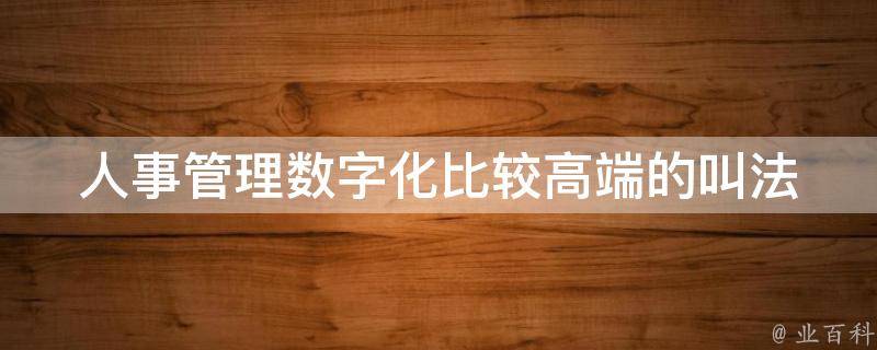 最佳答案人事管理数字化比较高端的叫法是人力资源管理。人力资源管理是人事管理的升级,是指在经济学与人本思想指导下,通过招聘、甄选、培训、报酬等管理形式对组织内外相关人力资源进行有效运用,满足组织当前及未来发展的需要,保证组织目标实现与成员发展的最大化的一系列活动的总称。