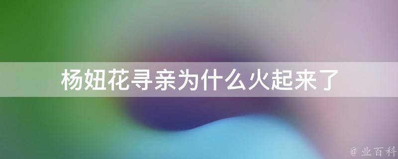 杨妞花寻亲火起来了是因为她经历了多年的艰辛和等待,志愿者的帮助、大量的寻亲信息发布,甚至采血入DNA库,杨妞花一直没有放弃对亲人的寻找。她生活在村里人的流言蜚语中,说自己是奶奶买回来的童养媳,还有传言说是被父母卖掉的,成家后,在丈夫的支持下开始寻亲。