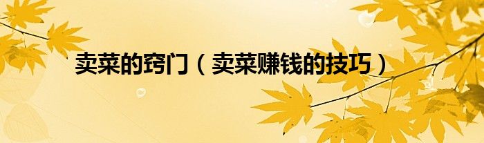 大家好,小联来为大家解答以上的问题。卖菜的窍门,卖菜赚钱的技巧这个很多人还不知道,现在让我们一起来看看吧!