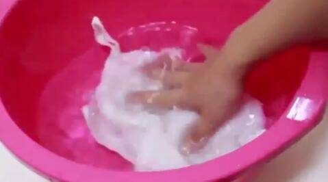准备一盆温水,羊羔绒外套在清洗的时候要注意温度,过高的温度会使羊毛缩水毡化,因此在清洗的时候水温要控制在30°左右。