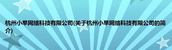 本文关于杭州小早网络科技有限公司的简介就讲解完毕,希望对大家有所帮助。