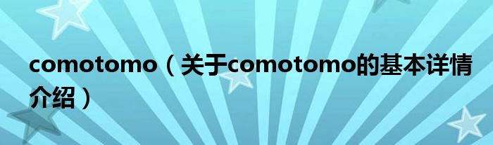 本文关于comotomo的基本详情介绍就讲解完毕,希望对大家有所帮助。