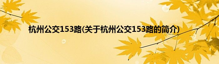 本文关于杭州公交153路的简介就讲解完毕,希望对大家有所帮助。
