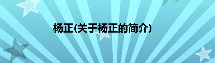 本文关于杨正的简介就讲解完毕,希望对大家有所帮助。