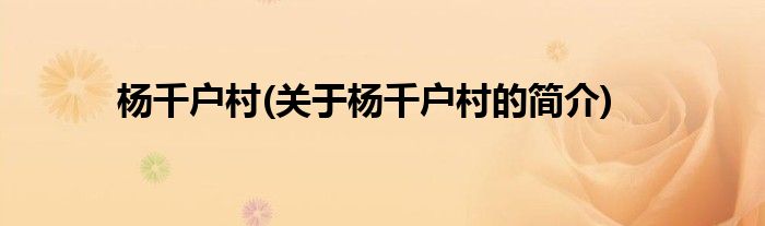 本文关于杨千户村的简介就讲解完毕,希望对大家有所帮助。
