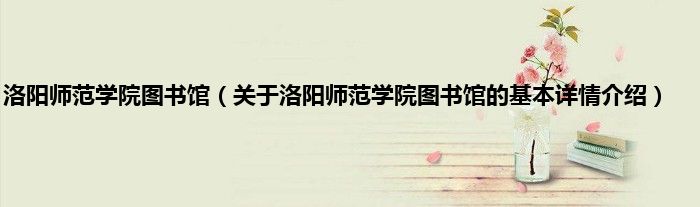 本文关于洛阳师范学院图书馆的基本详情介绍就讲解完毕,希望对大家有所帮助。