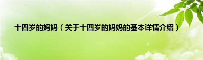 本文关于十四岁的妈妈的基本详情介绍就讲解完毕,希望对大家有所帮助。
