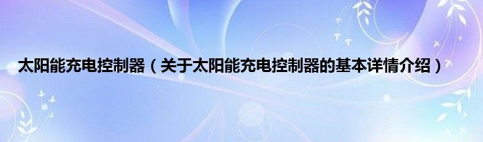 本文关于太阳能充电控制器的基本详情介绍就讲解完毕,希望对大家有所帮助。