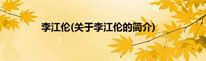 大家好,李江伦,关于李江伦的简介很多人还不知道,现在让我们一起来看看吧!