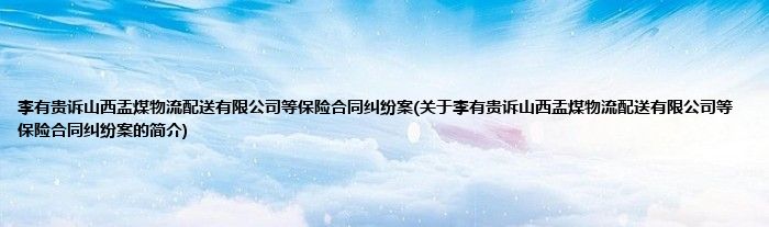 本文关于李有贵诉山西盂煤物流配送有限公司等保险合同纠纷案的简介就讲解完毕,希望对大家有所帮助。