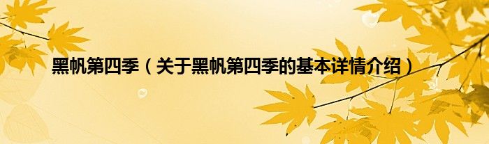 本文关于黑帆第四季的基本详情介绍就讲解完毕,希望对大家有所帮助。