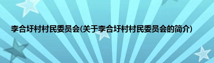 本文关于李合圩村村民委员会的简介就讲解完毕,希望对大家有所帮助。