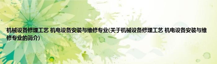 本文关于机械设备修理工艺 机电设备安装与维修专业的简介就讲解完毕,希望对大家有所帮助。