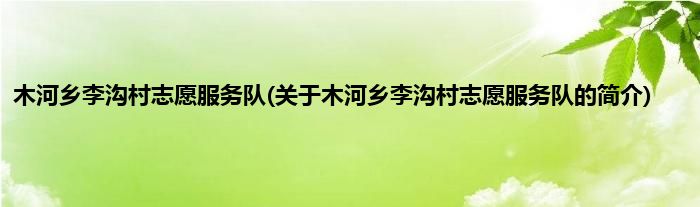 本文关于木河乡李沟村志愿服务队的简介就讲解完毕,希望对大家有所帮助。