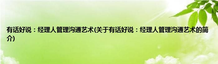 本文关于有话好说:经理人管理沟通艺术的简介就讲解完毕,希望对大家有所帮助。
