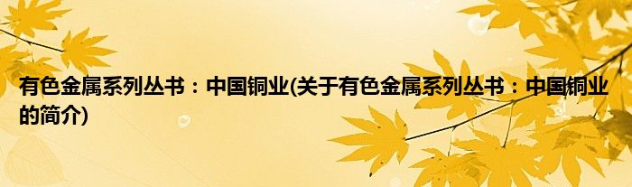 本文关于有色金属系列丛书:中国铜业的简介就讲解完毕,希望对大家有所帮助。