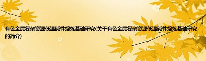 本文关于有色金属复杂资源低温碱性熔炼基础研究的简介就讲解完毕,希望对大家有所帮助。