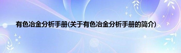 本文关于有色冶金分析手册的简介就讲解完毕,希望对大家有所帮助。