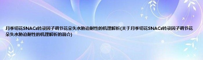 本文关于月季切花SNACs转录因子调节花朵失水胁迫耐性的机理解析的简介就讲解完毕,希望对大家有所帮助。