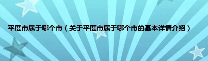 本文关于平度市属于哪个市的基本详情介绍就讲解完毕,希望对大家有所帮助。