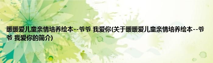 本文关于暖暖爱儿童亲情培养绘本--爷爷,我爱你的简介就讲解完毕,希望对大家有所帮助。