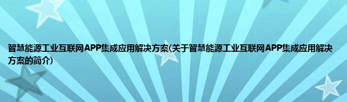 本文关于智慧能源工业互联网APP集成应用解决方案的简介就讲解完毕,希望对大家有所帮助。