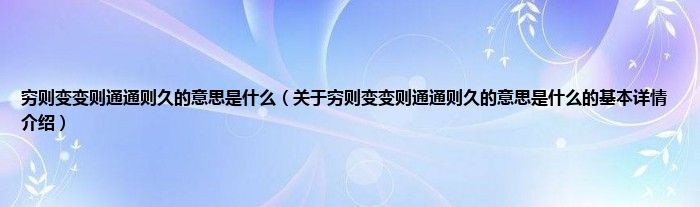 本文关于穷则变变则通通则久的意思是什么的基本详情介绍就讲解完毕,希望对大家有所帮助。