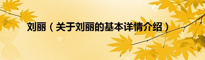 本文关于刘丽的基本详情介绍就讲解完毕,希望对大家有所帮助。