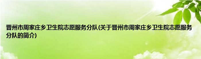 本文关于晋州市周家庄乡卫生院志愿服务分队的简介就讲解完毕,希望对大家有所帮助。