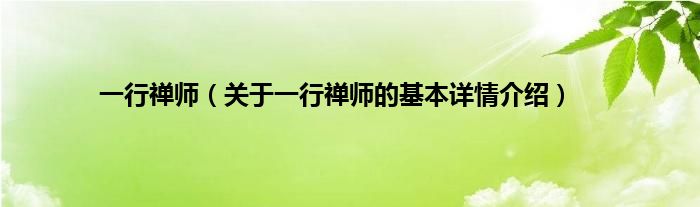 本文关于一行禅师的基本详情介绍就讲解完毕,希望对大家有所帮助。