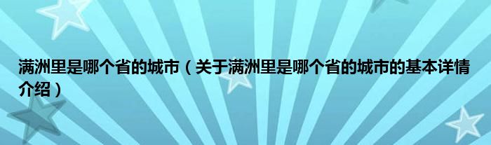 本文关于满洲里是哪个省的城市的基本详情介绍就讲解完毕,希望对大家有所帮助。