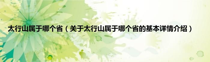 本文关于太行山属于哪个省的基本详情介绍就讲解完毕,希望对大家有所帮助。