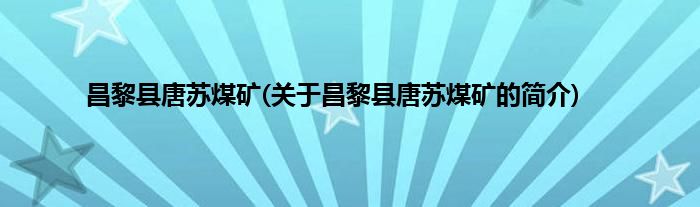 本文关于昌黎县唐苏煤矿的简介就讲解完毕,希望对大家有所帮助。
