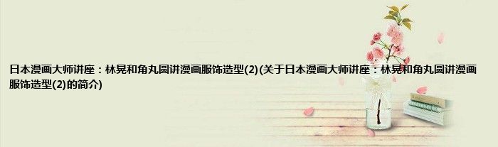 本文关于日本漫画大师讲座:林晃和角丸圆讲漫画服饰造型(2)的简介就讲解完毕,希望对大家有所帮助。
