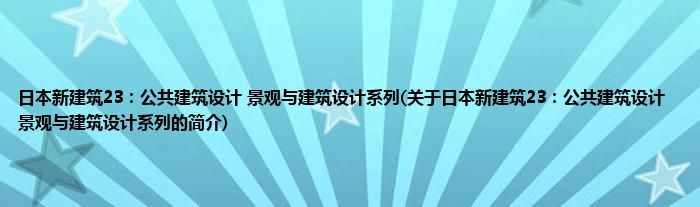 本文关于日本新建筑23:公共建筑设计 景观与建筑设计系列的简介就讲解完毕,希望对大家有所帮助。