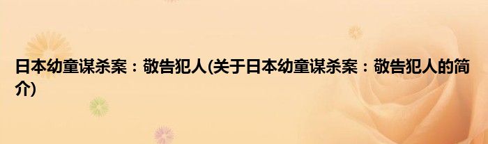 大家好,日本幼童谋杀案:敬告犯人,关于日本幼童谋杀案:敬告犯人的简介很多人还不知道,现在让我们一起来看看吧!